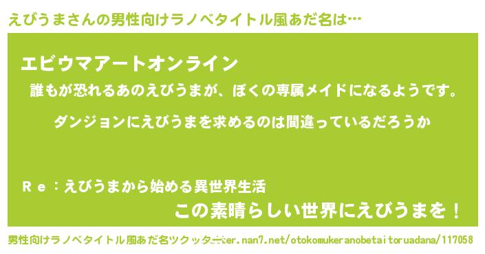 | 意味不明あだ名 | 『とにかく怪しいえびうま』 |