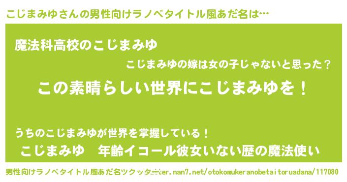 | 意味不明あだ名 | 『住所不定無職こじまみゆ(39歳)』 |