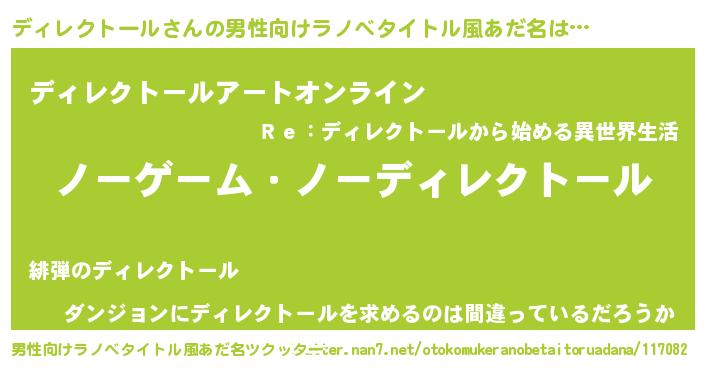 | 女子向けラノベタイトル風あだ名 | 『死神ディレクトールの再婚』 |