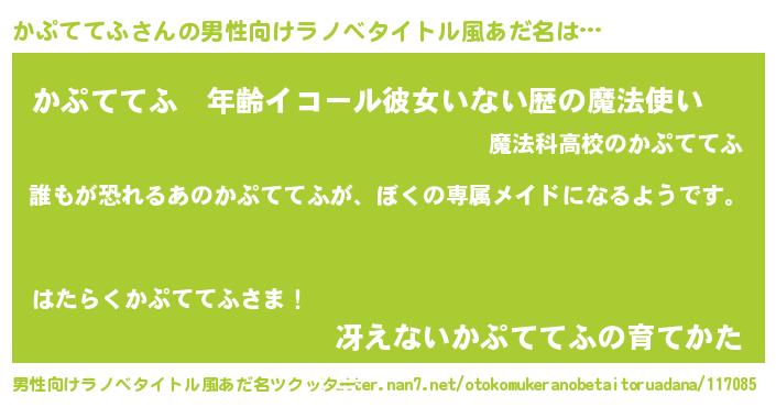 | 女子向けラノベタイトル風あだ名 | 『異世界でカフェかぷててふを開店しました。』 |