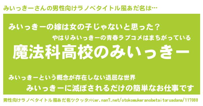 | ヒーロー風カッコイイあだ名 | 『サイバー戦士ミイッキー』 |