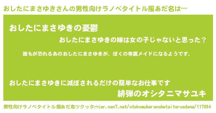 | ヘコむあだ名 | 『おしたにまさゆき(笑)』『おしっふぃ~』 |
