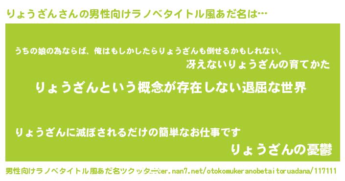 | 女子向けラノベタイトル風あだ名 | 『異世界で失敗しない100のりょうざん』 |