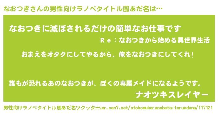 | 女子向けラノベタイトル風あだ名 | 『なおつき夫妻のなれそめ』 |