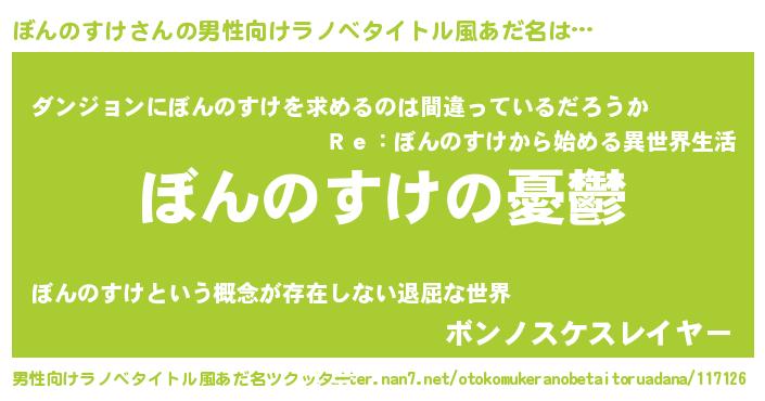 | 女子向けラノベタイトル風あだ名 | 『(仮)ぼんのすけのやんごとなき事情』 |