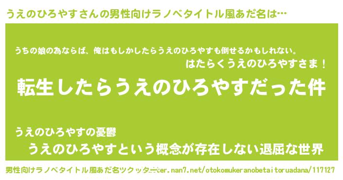 | 肩書あだ名 | 『うえのひろやす大佐』 |
