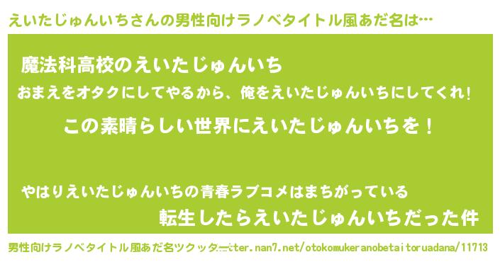 | 意味不明あだ名 | 『住所不定無職えいたじゅんいち(14歳)』 |