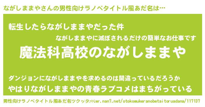 | 意味不明あだ名 | 『自称ながしままや』 |