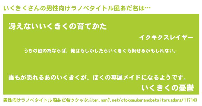 | 意味不明あだ名 | 『いくきくフォーエバー』『自称いくきく』 |