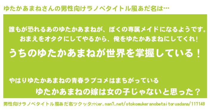 | 女子向けラノベタイトル風あだ名 | 『男装ゆたかあまねの憂鬱な任務』 |