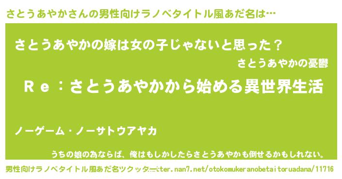 | 女子向けラノベタイトル風あだ名 | 『さとうあやかストレイドッグス』 |