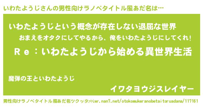 | 女子向けラノベタイトル風あだ名 | 『闇のいわたようじ』 |