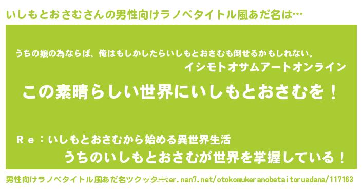 | 意味不明あだ名 | 『住所不定無職いしもとおさむ(7歳)』 |