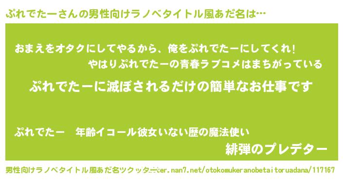 | 伝説のあだ名 | 『救世主となる錬金術士ぷれでたー』 |