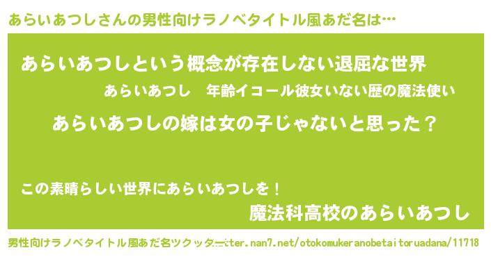 | ヒーロー風カッコイイあだ名 | 『天弓騎士アラ』『ネオアライアツシ』 |
