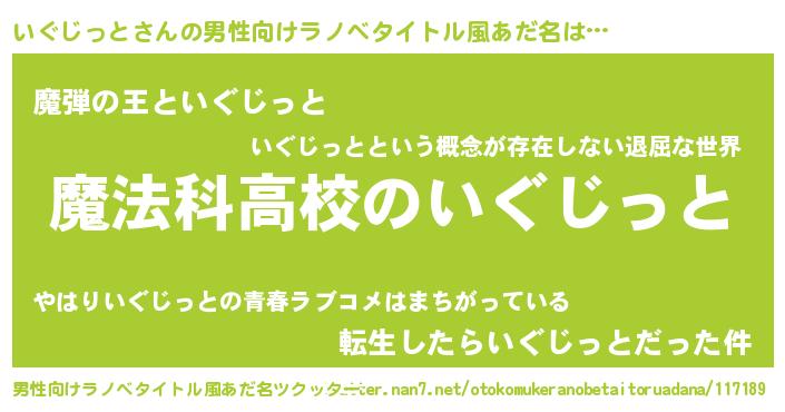 | 女子向けラノベタイトル風あだ名 | 『いぐじっとなんてお断りですっ。』 |