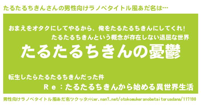 | 女子向けラノベタイトル風あだ名 | 『たるたるちきん姫と円卓の騎士』 |