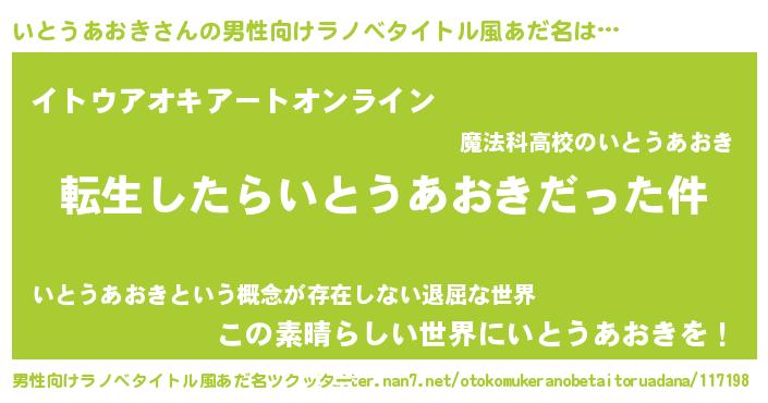 | ヒーロー風カッコイイあだ名 | 『スーパーイトウアオキ』『仮面イトダー』 |