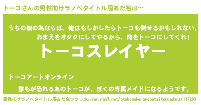 | 意味不明あだ名 | 『エリンギ科トーコ属』『永久保存トーコ』 |
