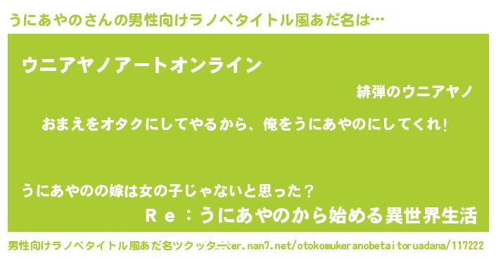 | 女子向けラノベタイトル風あだ名 | 『うにあやの恋絵巻』 |