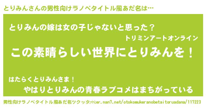 | 意味不明あだ名 | 『住所不定無職とりみん(43歳)』 |