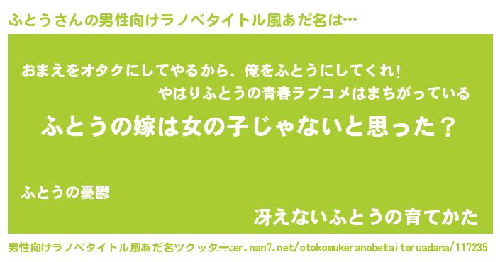| 女子向けラノベタイトル風あだ名 | 『ふとうの卵を拾いまして』 |