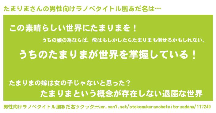 | 女子向けラノベタイトル風あだ名 | 『男装たまりまの憂鬱な任務』 |