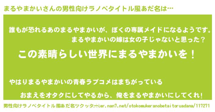 | 女子向けラノベタイトル風あだ名 | 『乙女ゲームの破滅フラグしかない悪役まるやまかいに転生してしまった…』 |