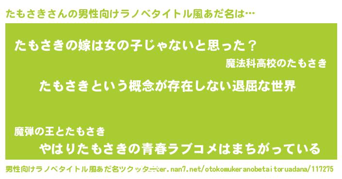 | 意味不明あだ名 | 『永久保存たもさき』『自称たもさき』 |