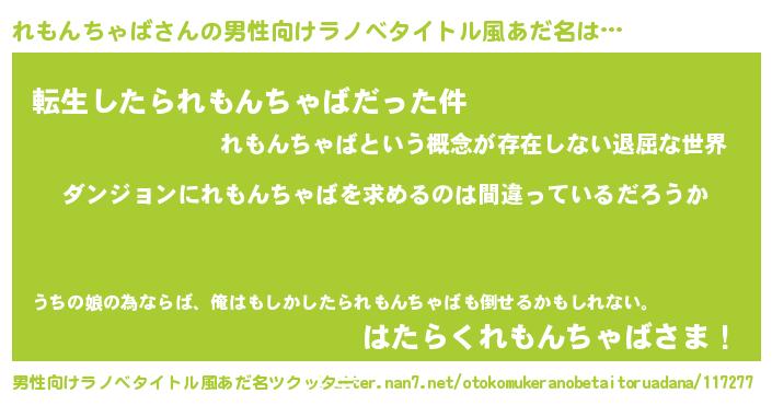 | ヘコむあだ名 | 『れもっちょ』『れもんちゃば(遠い目)』 |
