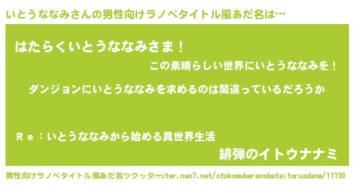 | 意味不明あだ名 | 『とにかく怪しいいとうななみ』 |