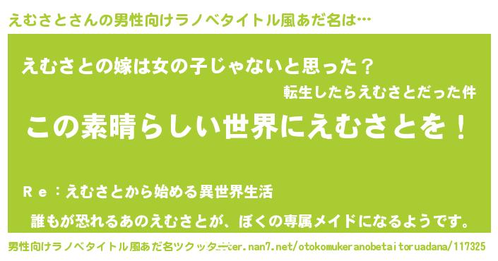 | 意味不明あだ名 | 『住所不定無職えむさと(4歳)』 |