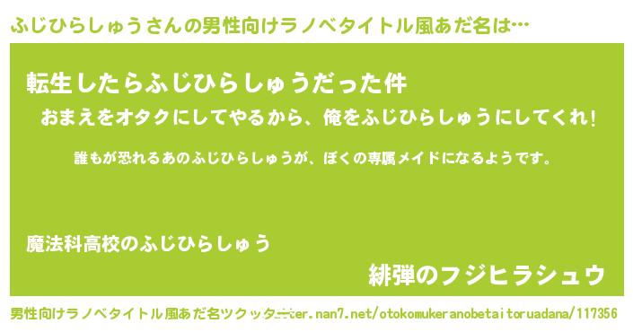 | ヘコむあだ名 | 『ふじひらしゅう(笑)』『豆乳』 |