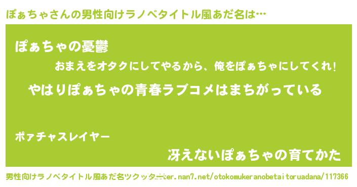 | 女子向けラノベタイトル風あだ名 | 『ぽぁちゃの雑貨屋さん』 |