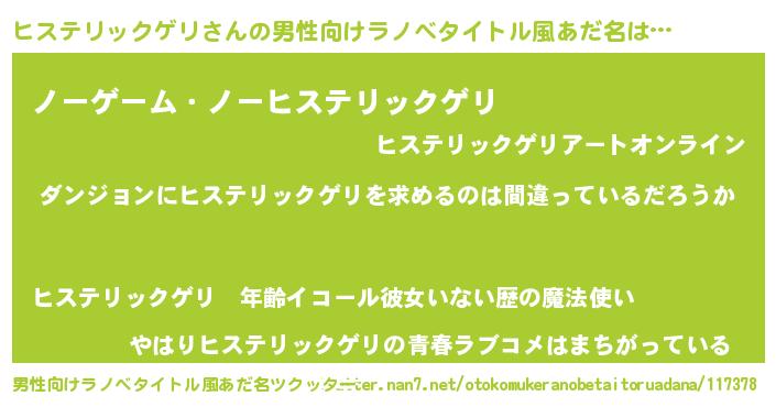 | ポケモン風あだ名 | 『ヒヒステリックゲリ』『ヒックウザ』 |