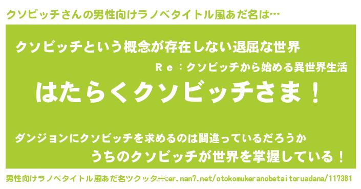 | 意味不明あだ名 | 『永久保存クソビッチ』『自称クソビッチ』 |