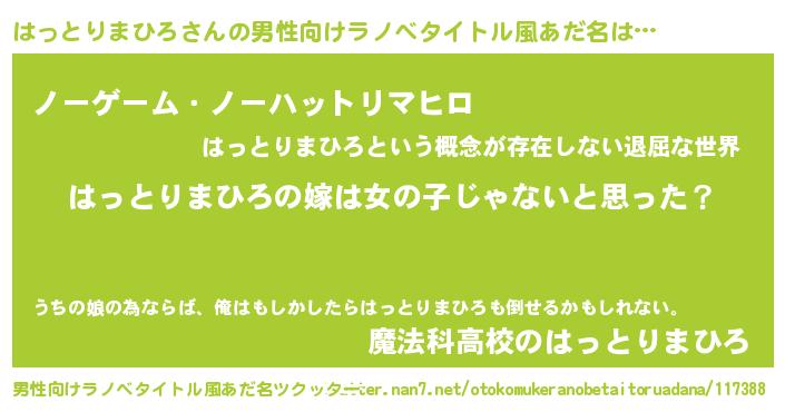 | ヘコむあだ名 | 『はっっぺ』『はっとりまひろ(笑)』 |