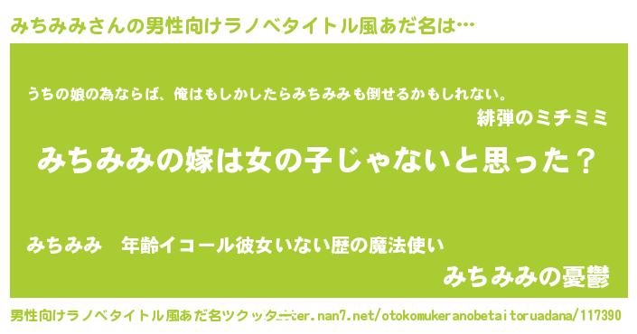 | 女子向けラノベタイトル風あだ名 | 『みちみみ様がみてる』 |