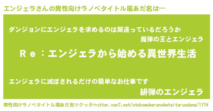 | ヒーロー風カッコイイあだ名 | 『最強戦士エンジェラ』『魔戒騎士エン』 |
