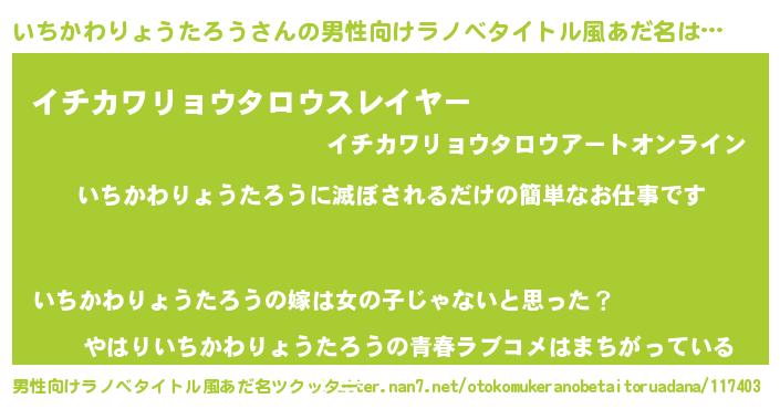 | ヒーロー風カッコイイあだ名 | 『ウルトラいちかわりょうたろうマン』 |