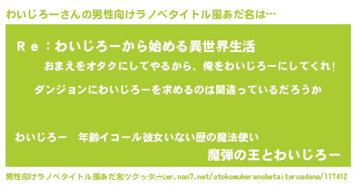| 女子向けラノベタイトル風あだ名 | 『わいじろーは平凡を望む』 |