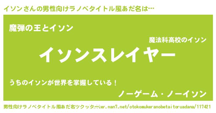 | ヒーロー風カッコイイあだ名 | 『仮面イソダー』『愛の使者イソン』 |