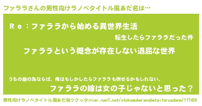 | 意味不明あだ名 | 『永久保存ファララ』『自称ファララ』 |