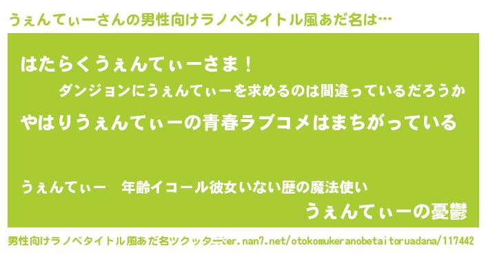 | 女子向けラノベタイトル風あだ名 | 『うぇんてぃーの雑貨屋さん』 |