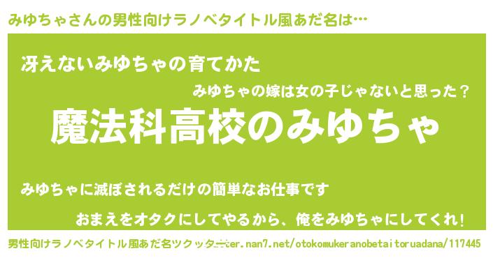 | 女子向けラノベタイトル風あだ名 | 『みゆちゃアンティーク』 |