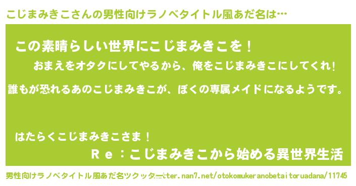 | 胡散臭い通販商品みたいなあだ名 | 『来世でも幸せになれる健康食品…その名も「こじまみきこ」』 |