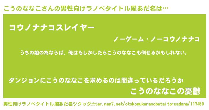 | 女子向けラノベタイトル風あだ名 | 『こうのななこの婚約者』 |