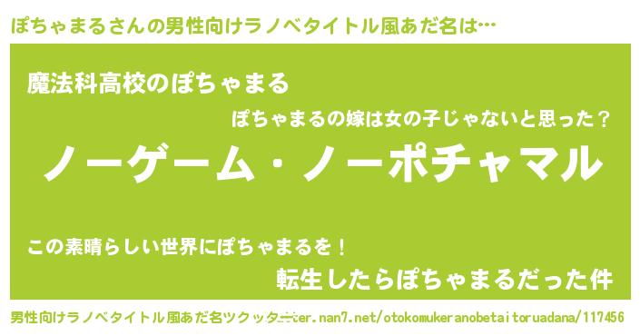 | ヘコむあだ名 | 『ぽちっぺ』『ぽちゃまる(苦笑)』 |