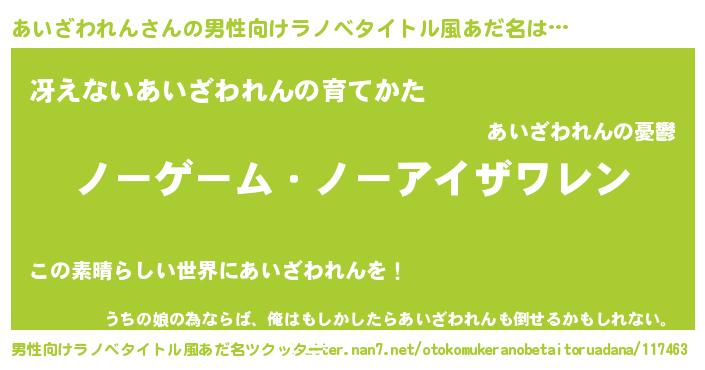 女子向けラノベタイトル風あだ名 | 『死神あいざわれんの再婚』 |