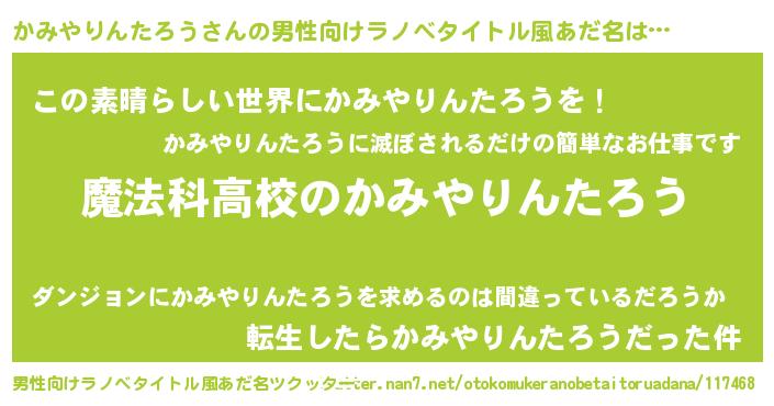 | 女子向けラノベタイトル風あだ名 | 『かみやりんたろうなんてお断りですっ。』 |